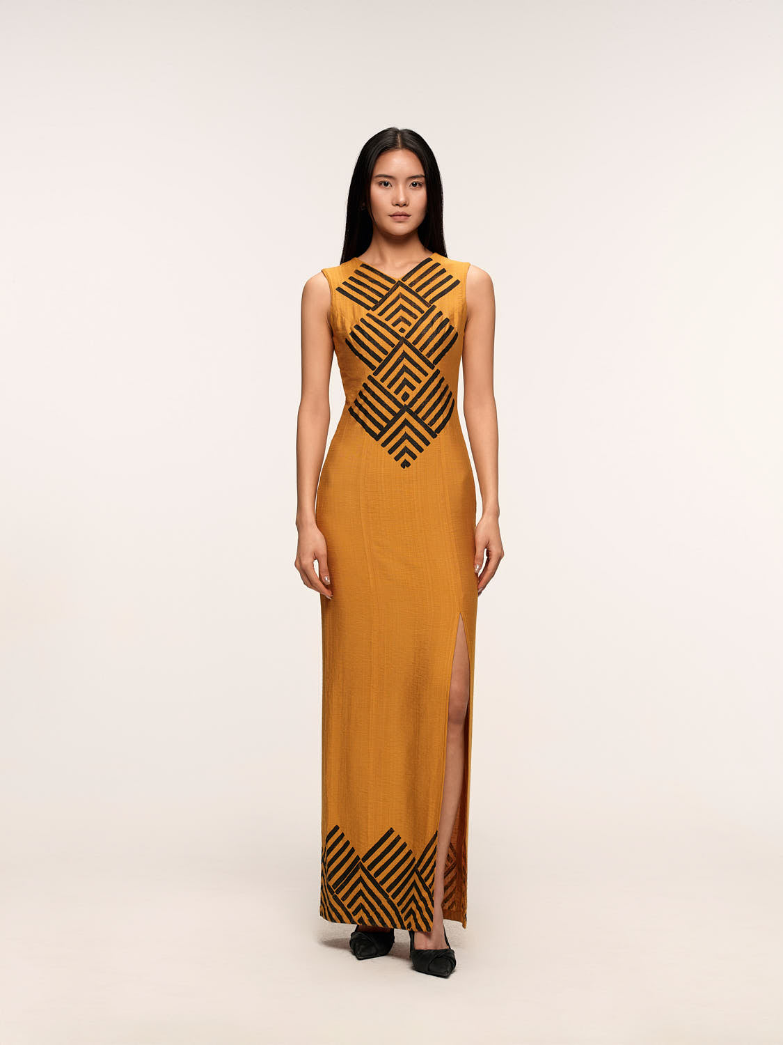 Beige Geometries Long Dress