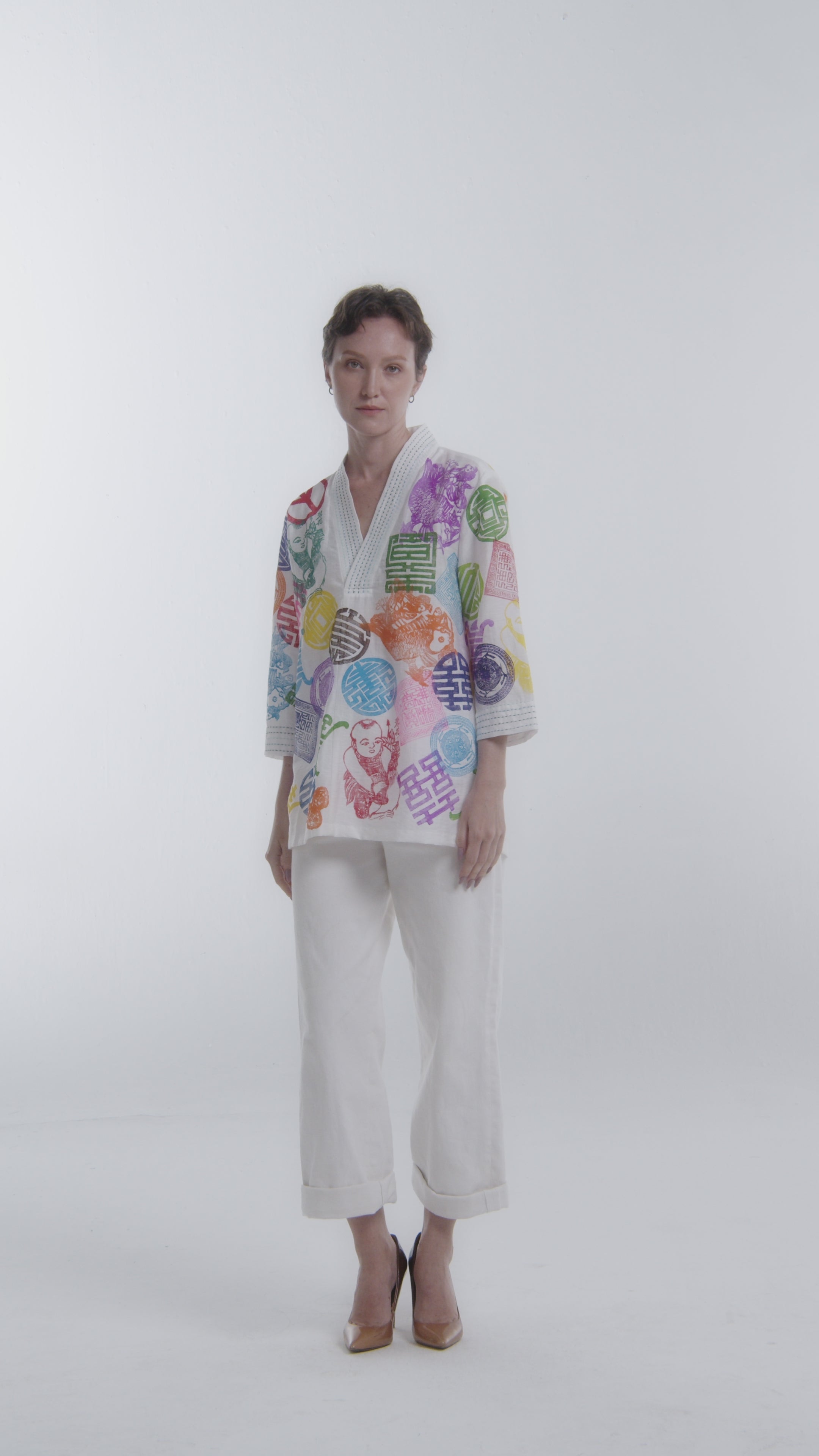 Các biểu tượng và họa tiết Việt Nam được vẽ tay bằng phương pháp in khối truyền thống