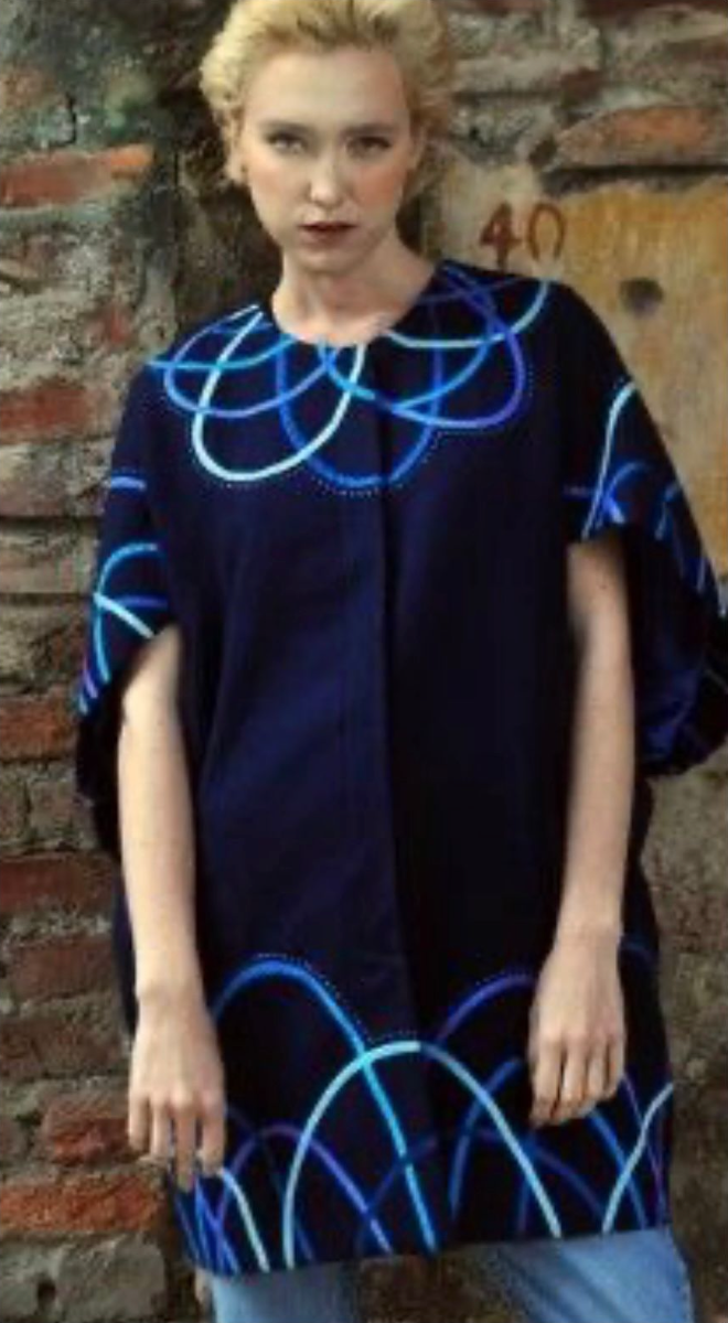 Elegant navy cape with blue silk stripes